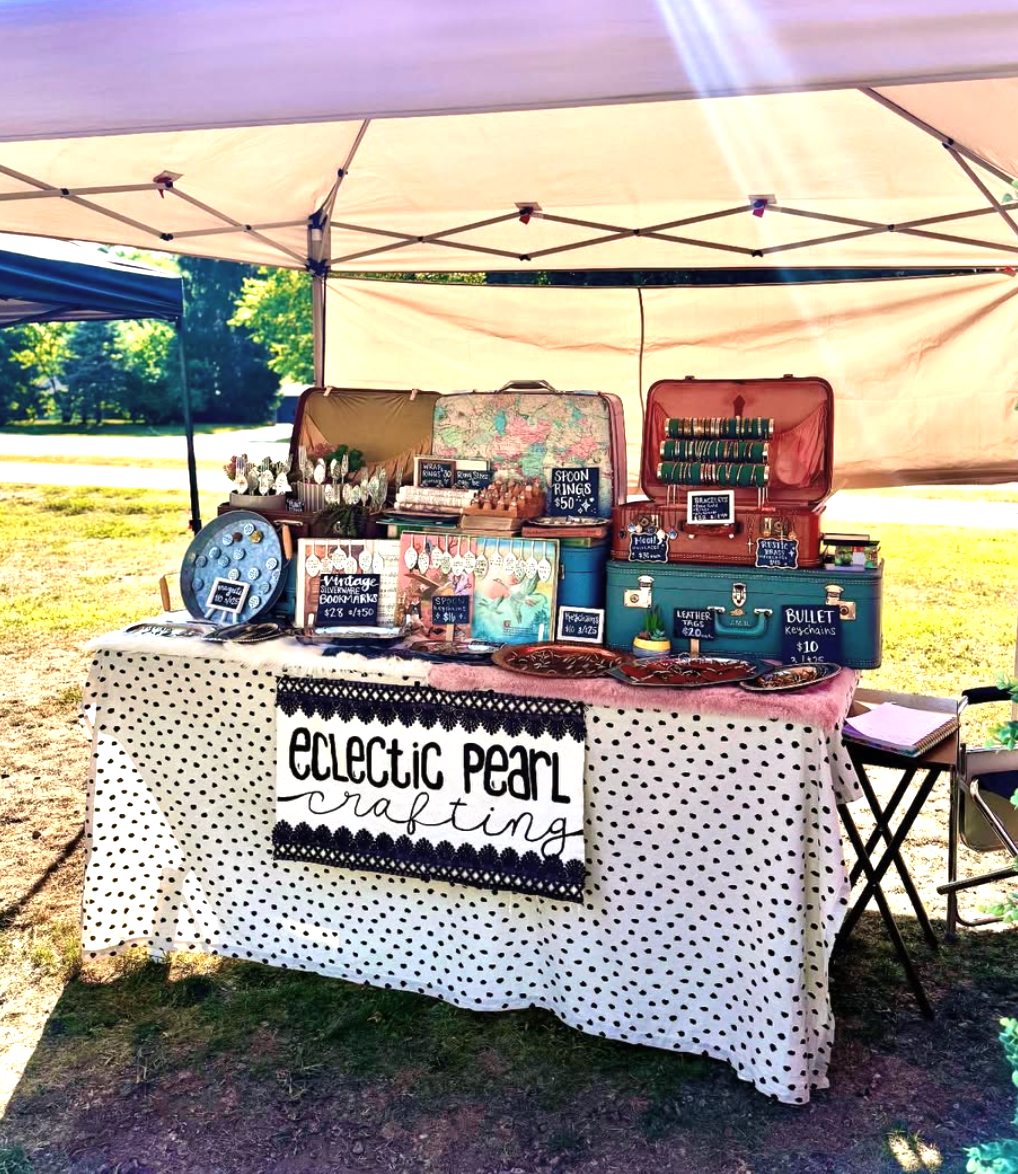 Unique metal-stamped jewelry and vintage silverware pieces — see where I’ll be next.