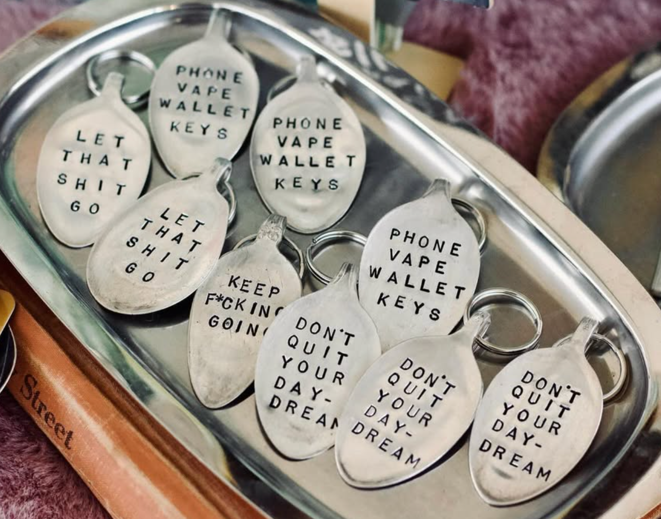Unique metal-stamped jewelry and vintage silverware pieces — see where I’ll be next.